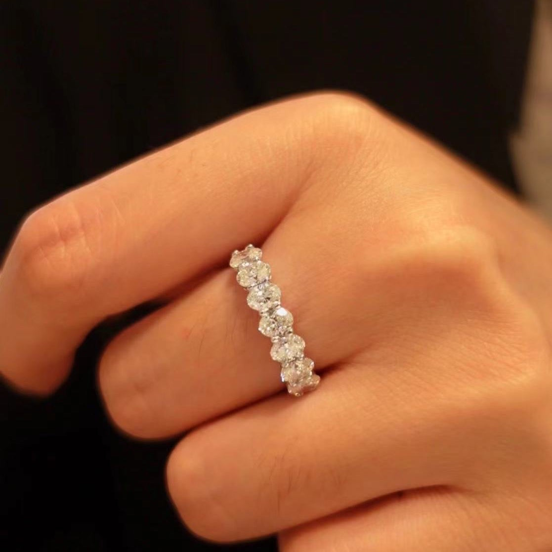 For those who prefer bolder looks, large statement pieces can make a stunning impression on both colleagues and clients alike. A chunky necklace with a single large diamond in its center, like this Round Diamond Sunflower Pendant Necklace And Earrings In 18k White Gold ($1,460) is sure to have everyone talking about your high-end taste in fashion. If flashy rings are more your thing, then consider something along the lines of this Oval Shaped Diamond Anniversary Band In 18k White Gold ($1,890).